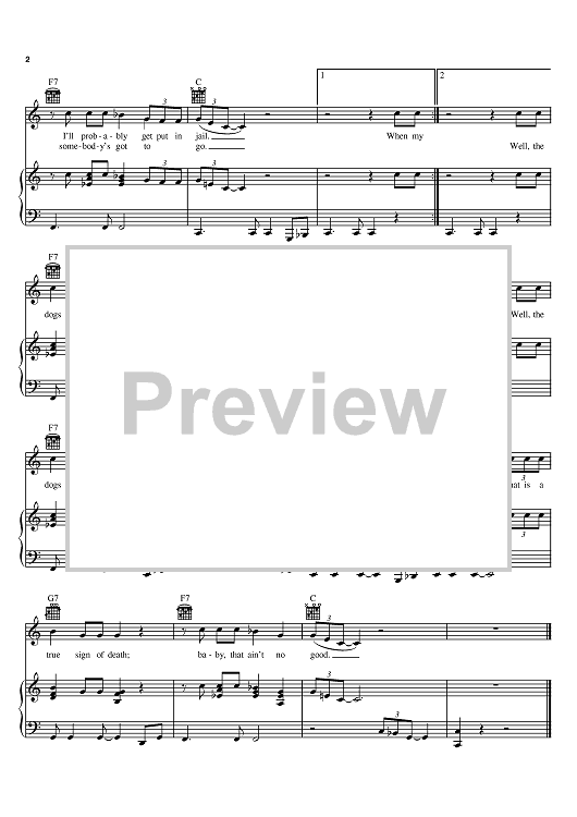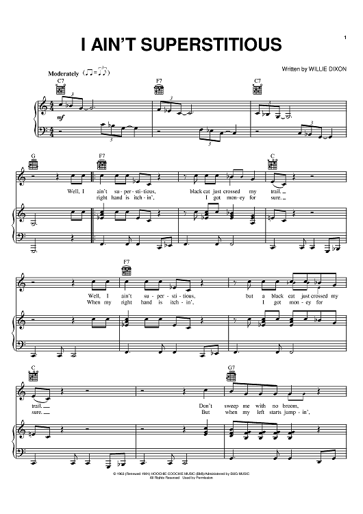 Digital Sheet Music for I Ain't Superstitious by Jeff Beck, Willie Dixon, Howlin' Wolf scored for Piano/Vocal/Chords; id:384127