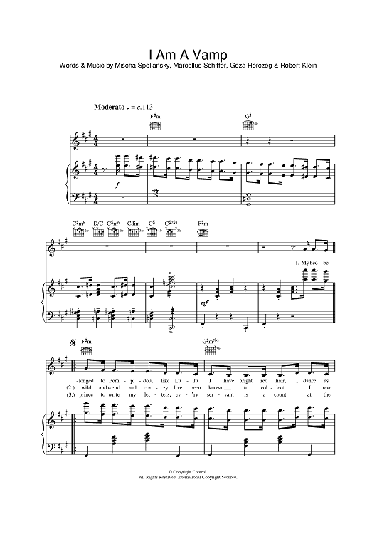 Digital Sheet Music for I Am A Vamp by Ute Lemper scored for Piano/Vocal/Chords; id:378428