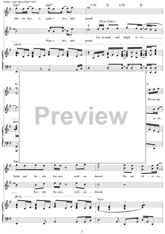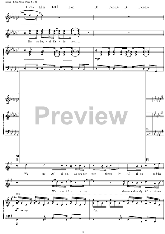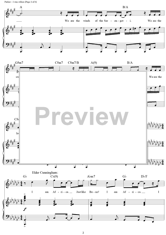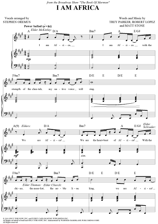 Digital Sheet Music for I Am Africa by Robert Lopez, Trey Parker, Matt Stone, Stephen Oremus scored for Piano/Vocal/Chords; id:429829