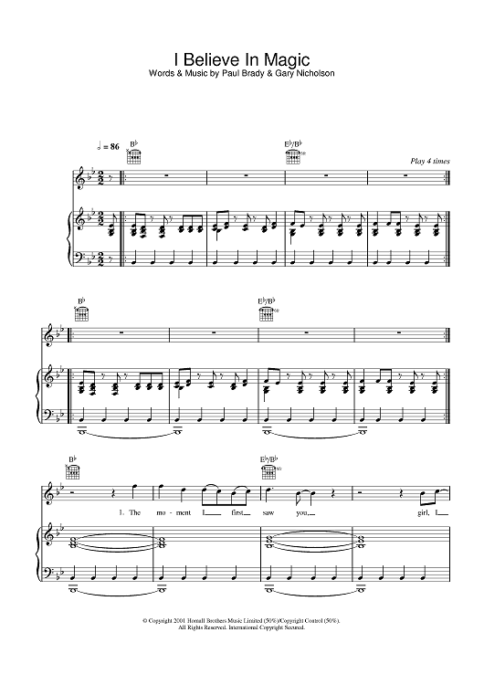 Digital Sheet Music for I Believe In Magic by Paul Brady scored for Piano/Vocal/Chords; id:378053