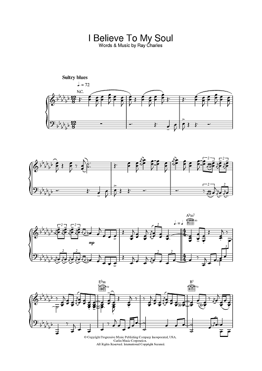 "I Believe To My Soul" Sheet Music by Ray Charles