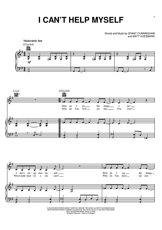 Digital Sheet Music for I Can't Help Myself by Matt Huesmann, Grant Cunningham, The Martins scored for Piano/Vocal/Chords; id:380453