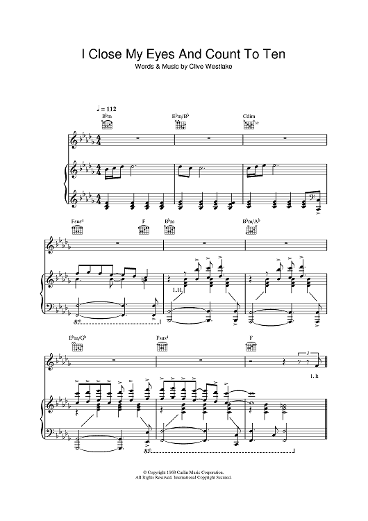 Digital Sheet Music for I Close My Eyes And Count To Ten by Dusty Springfield, Clive Westlake scored for Piano/Vocal/Chords; id:383875