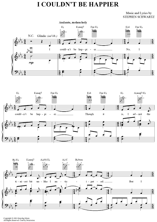 Digital Sheet Music for I Couldn't Be Happier by Stephen Schwartz scored for Piano/Vocal/Chords; id:367211