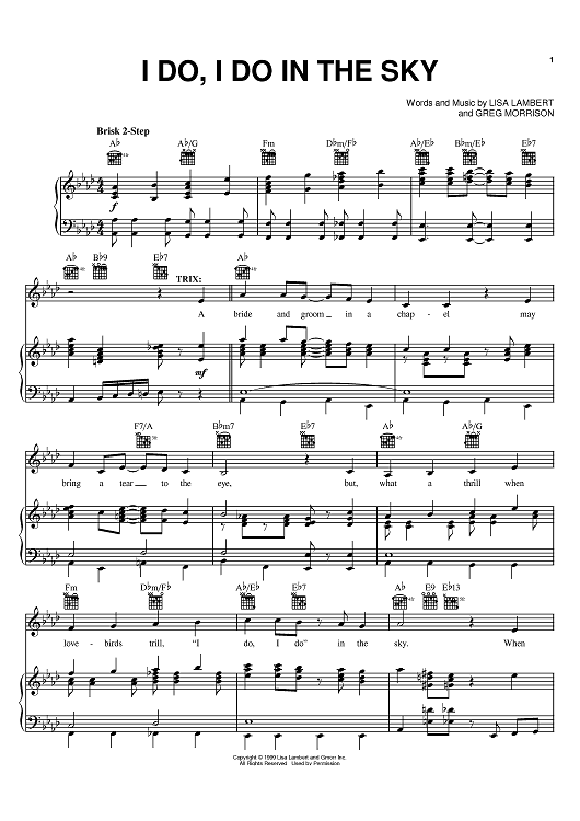 Digital Sheet Music for I Do, I Do In The Sky by Lisa Lambert, Greg Morrison scored for Piano/Vocal/Chords; id:396870