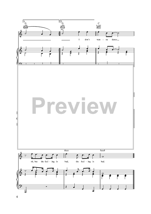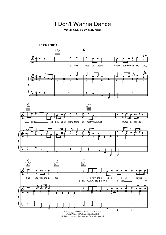 Digital Sheet Music for I Don't Wanna Dance by Eddy Grant scored for Piano/Vocal/Chords; id:401368