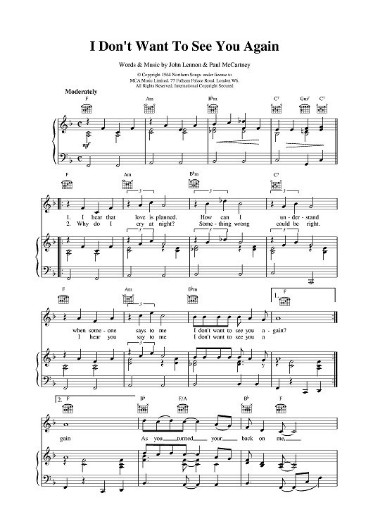 Digital Sheet Music for I Don't Want To See You Again by Paul McCartney, John Lennon, Peter and Gordon scored for Piano/Vocal/Chords; id:380082