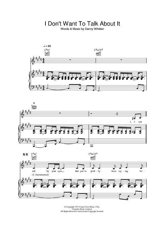 Digital Sheet Music for I Don't Want To Talk About It by Danny Whitten, Everything but the Girl scored for Piano/Vocal/Chords; id:388698
