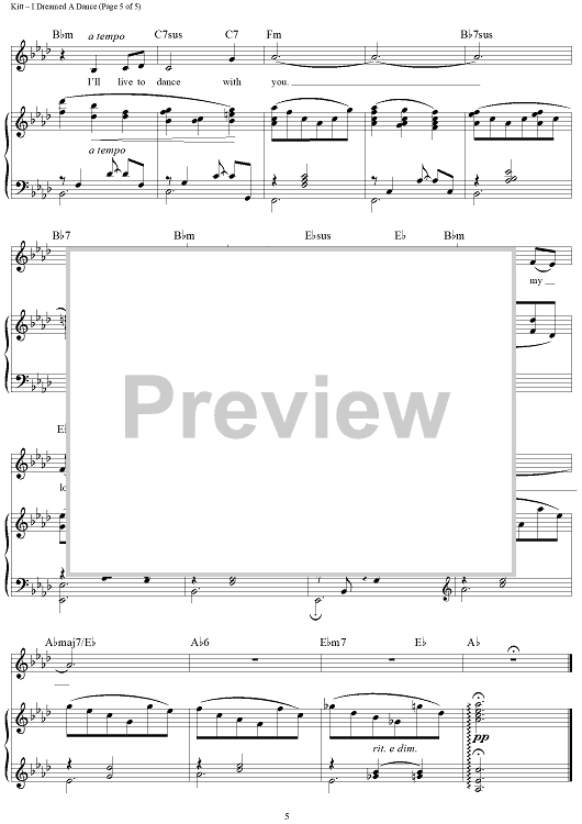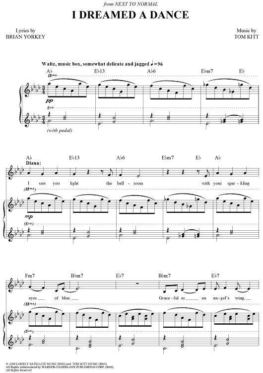 "I Dreamed A Dance" Sheet Music by Tom Kitt