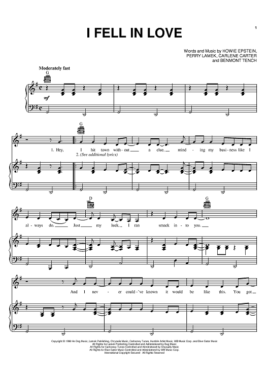 Digital Sheet Music for I Fell In Love by Benmont Tench, Carlene Carter, Howie Epstein, Perry Lamek scored for Piano/Vocal/Chords; id:381734