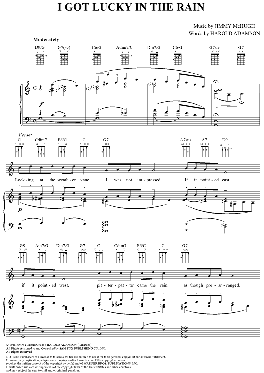 Digital Sheet Music for I Got Lucky in the Rain by Jimmy McHugh, Harold Adamson scored for Piano/Vocal/Chords; id:287408