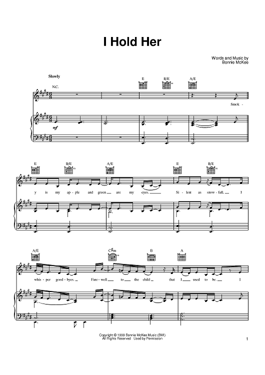 Digital Sheet Music for I Hold Her by Bonnie McKee scored for Piano/Vocal/Chords; id:381169