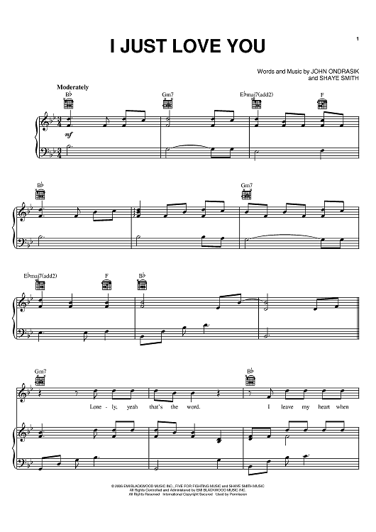 Digital Sheet Music for I Just Love You by Shaye Smith, Five for Fighting scored for Piano/Vocal/Chords; id:397146