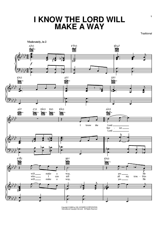 Digital Sheet Music for I Know The Lord Will Make A Way by Smokie Norful scored for Piano/Vocal/Chords; id:381646