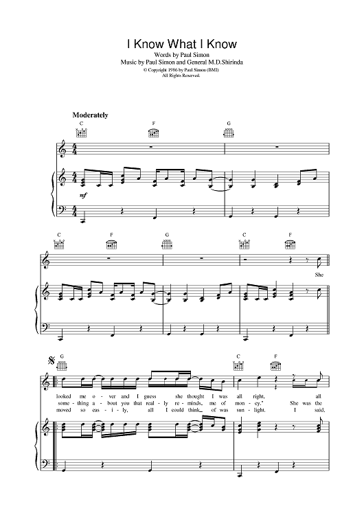 Digital Sheet Music for I Know What I Know by Paul Simon scored for Piano/Vocal/Chords; id:375511