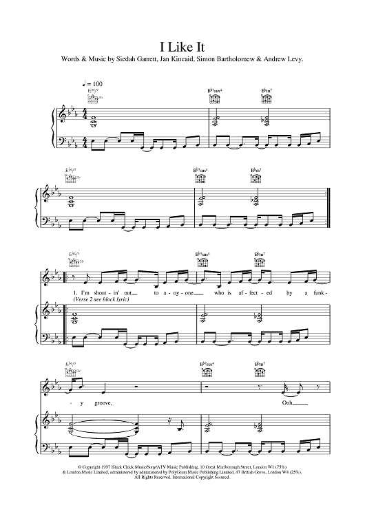 Digital Sheet Music for I Like It by Brand New Heavies scored for Piano/Vocal/Chords; id:376489