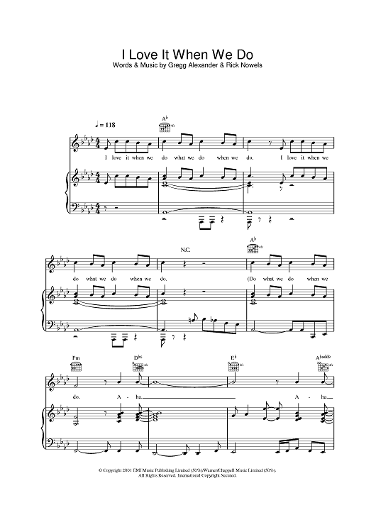 Digital Sheet Music for I Love It When We Do by Rick Nowels, Gregg Alexander, Ronan Keating scored for Piano/Vocal/Chords; id:381289