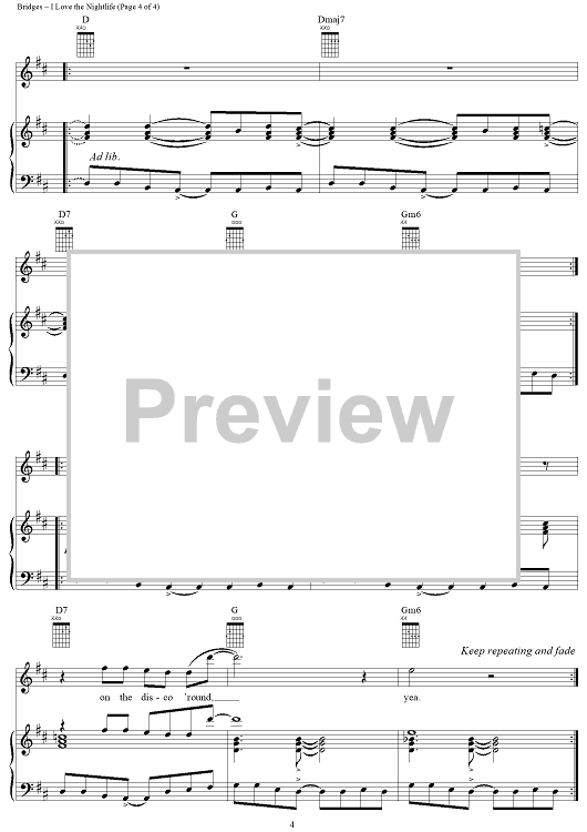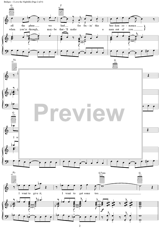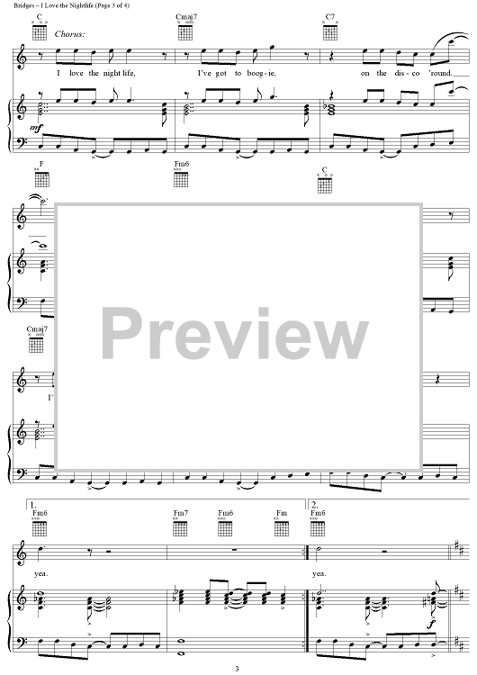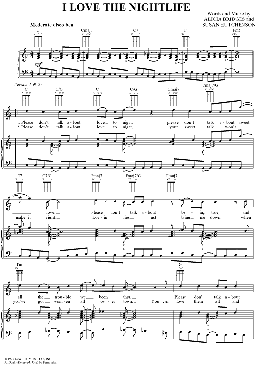 Digital Sheet Music for I Love the Nightlife by Alicia Bridges, Susan Hutchenson scored for Piano/Vocal/Chords; id:124126