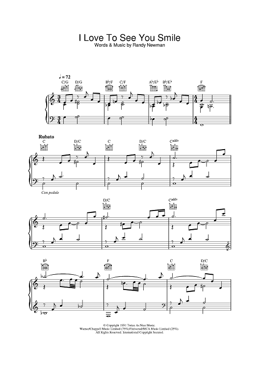 Digital Sheet Music for I Love To See You Smile by Randy Newman scored for Piano/Vocal/Chords; id:384553