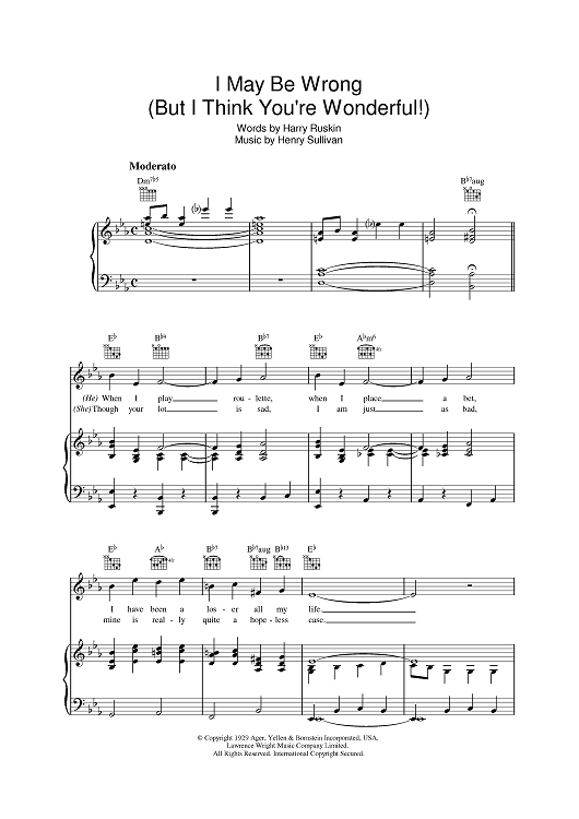 Digital Sheet Music for I May Be Wrong (But I Think You're Wonderful) by Henry Sullivan, Harry Ruskin scored for Piano/Vocal/Chords; id:392880