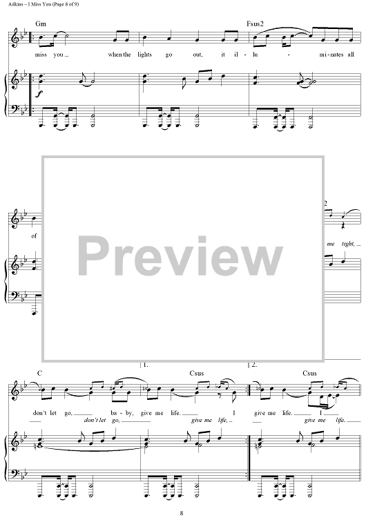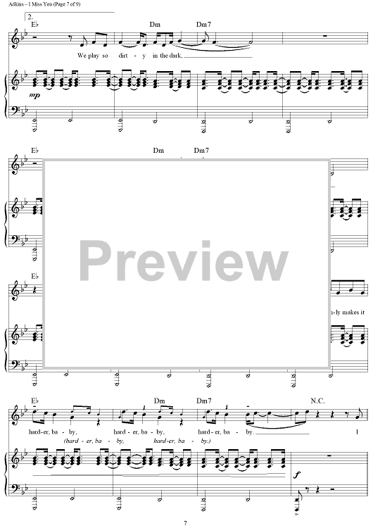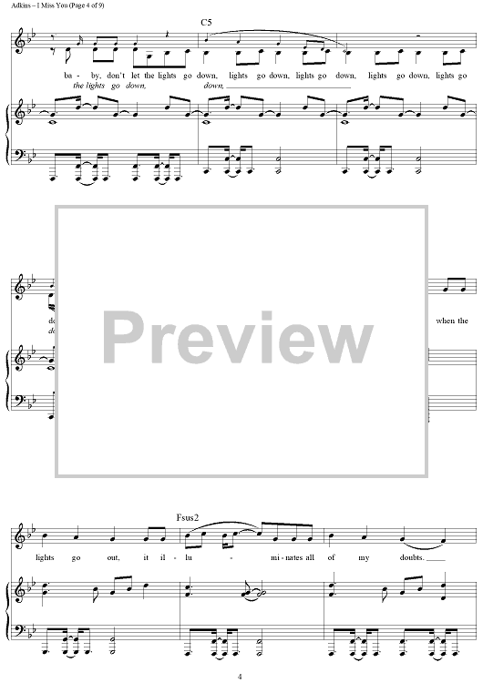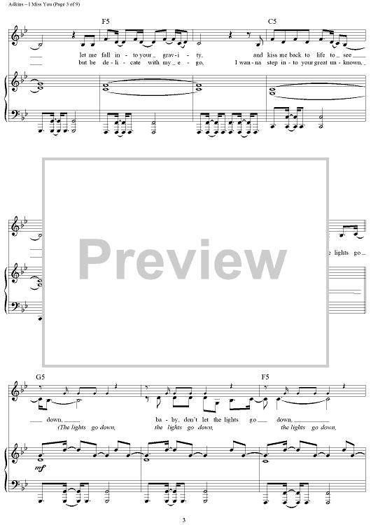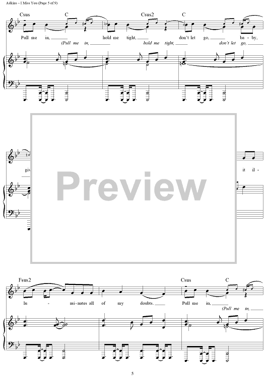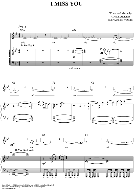 Digital Sheet Music for I Miss You by Paul Epworth, Adele Adkins, Adele scored for Piano/Vocal/Chords; id:456340