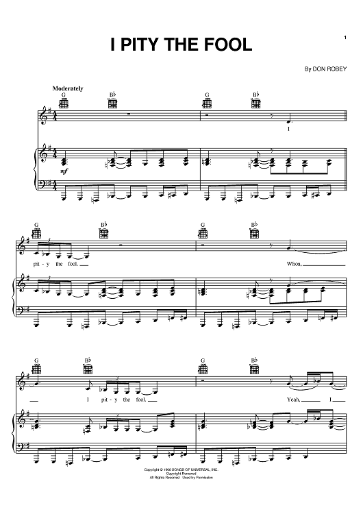 Digital Sheet Music for I Pity The Fool by Don Robey, Ann Peebles scored for Piano/Vocal/Chords; id:384711