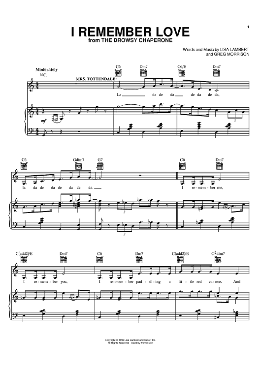 Digital Sheet Music for I Remember Love by Lisa Lambert, Greg Morrison scored for Piano/Vocal/Chords; id:396871