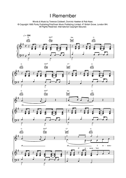 Digital Sheet Music for I Remember by East 17 scored for Piano/Vocal/Chords; id:376087