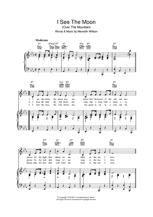 Digital Sheet Music for I See The Moon by Meredith Willson scored for Piano/Vocal/Chords; id:395705