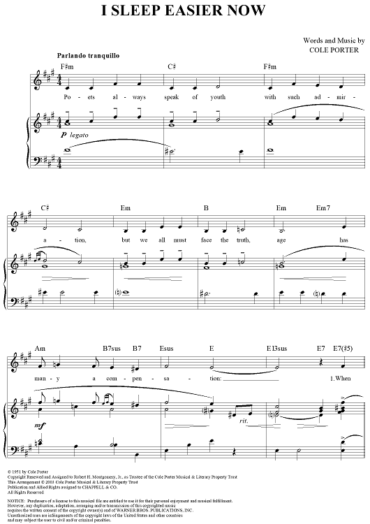 "I Sleep Easier Now" Sheet Music by Cole Porter