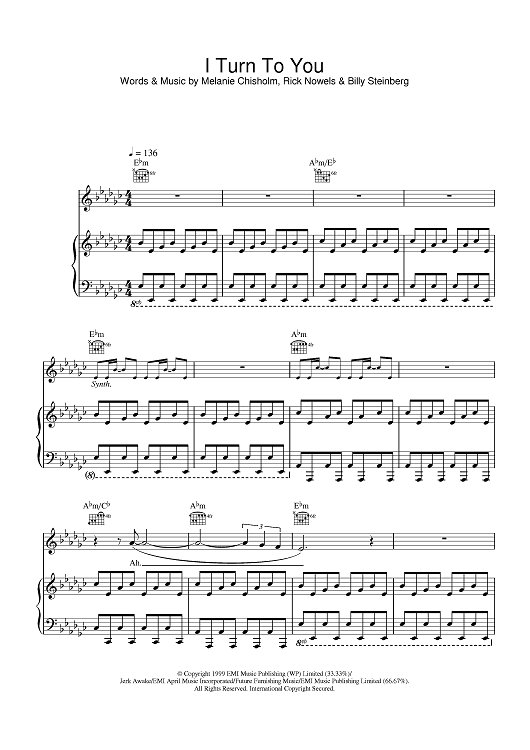 Digital Sheet Music for I Turn To You by Mel C scored for Piano/Vocal/Chords; id:376941