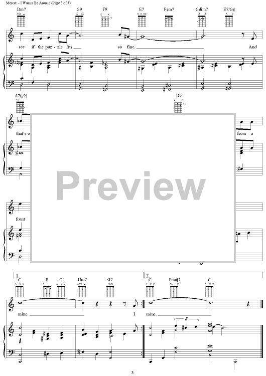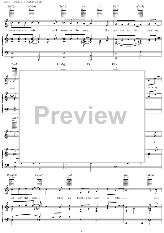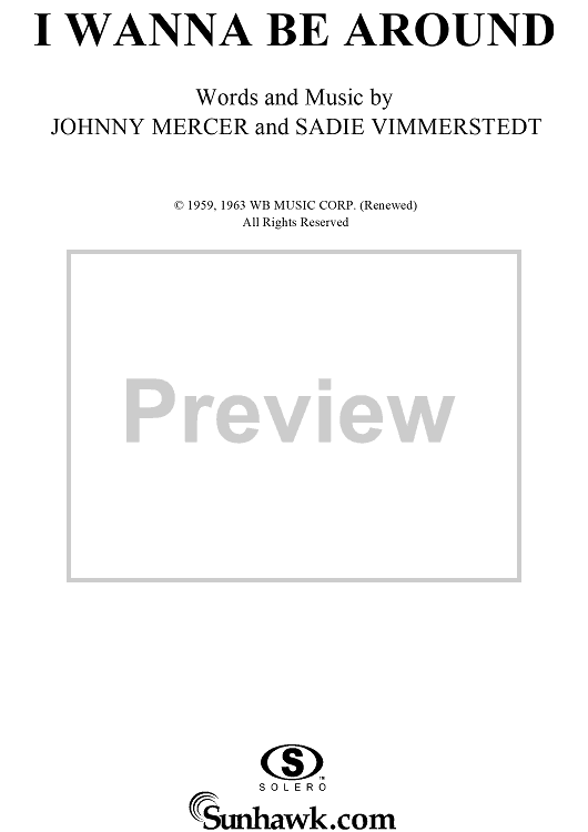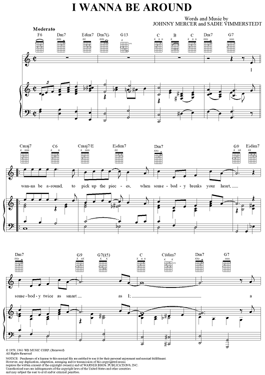 Digital Sheet Music for I Wanna Be Around by Johnny Mercer, Tony Bennett, Sadie Vimmerstedt scored for Piano/Vocal/Chords; id:131740