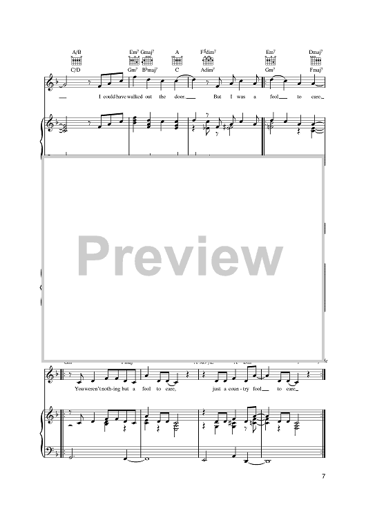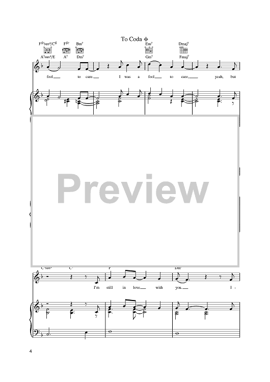 Digital Sheet Music for I Was A Fool To Care by James Taylor scored for Piano/Vocal/Chords; id:393337