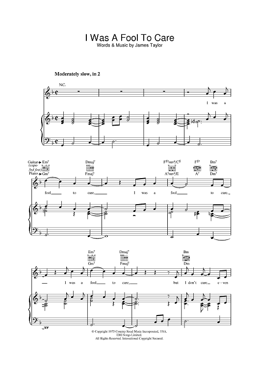 "I Was A Fool To Care" Sheet Music by James Taylor