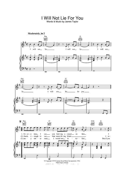 Digital Sheet Music for I Will Not Lie For You by James Taylor scored for Piano/Vocal/Chords; id:393339