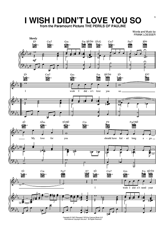 Digital Sheet Music for I Wish I Didn't Love You So by Dinah Shore, Frank Loesser scored for Piano/Vocal/Chords; id:390907