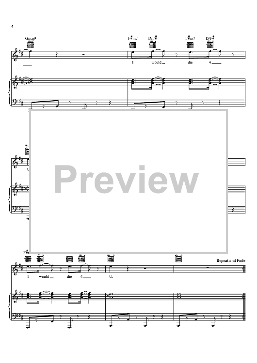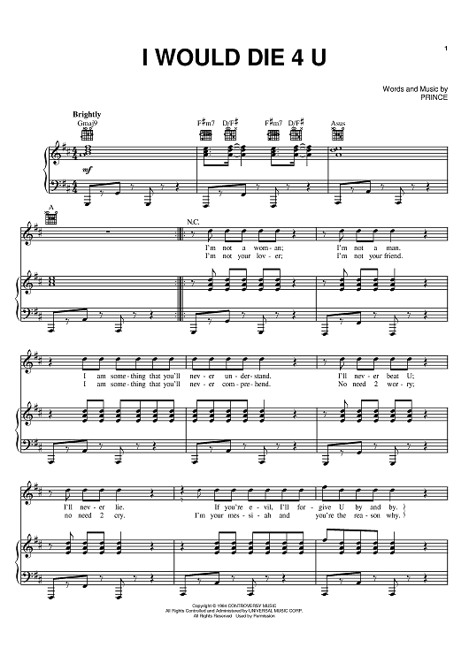 Digital Sheet Music for I Would Die 4 U by Prince scored for Piano/Vocal/Chords; id:398358