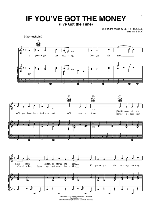 Digital Sheet Music for If You've Got The Money (I've Got The Time) by Lefty Frizzell, Jim Beck, Willie Nelson scored for Piano/Vocal/Chords; id:391477