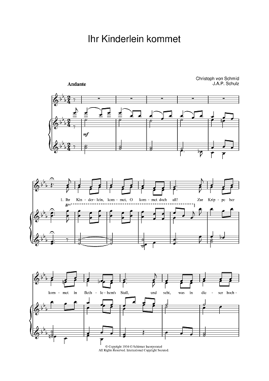 Digital Sheet Music for Ihr Kinderlein Kommet by Christoph von Schmid, Johann Abraham Peter Schulz, Weihnachtslied scored for Piano/Vocal/Chords; id:394302