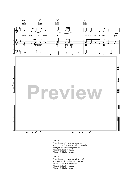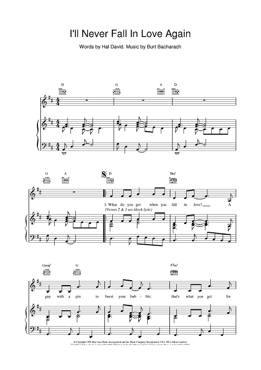 Digital Sheet Music for I'll Never Fall In Love Again by Hal David, Burt Bacharach scored for Piano/Vocal/Chords; id:382374