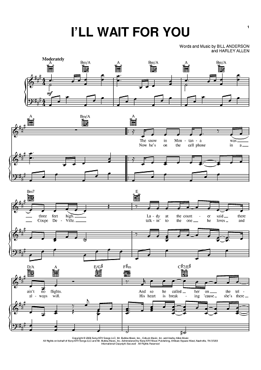 Digital Sheet Music for I'll Wait For You by Harley Allen, Bill Anderson, Joe Nichols scored for Piano/Vocal/Chords; id:394849