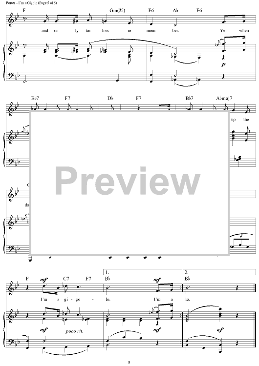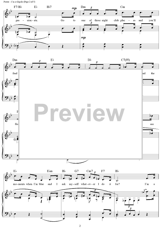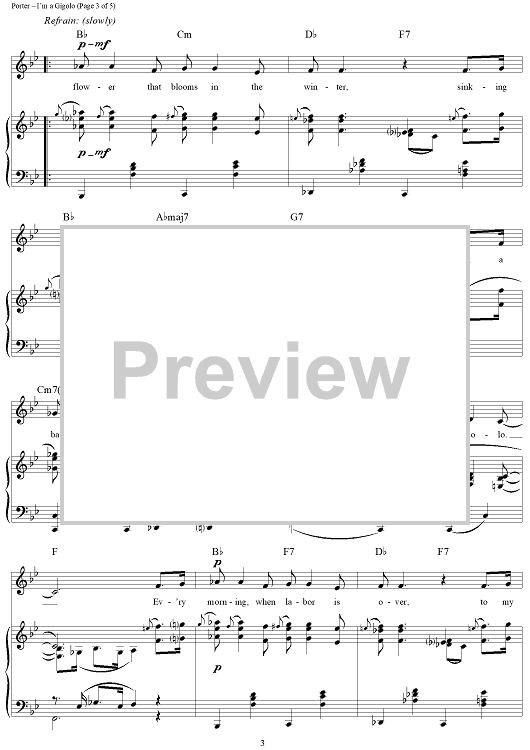 Digital Sheet Music for I'm a Gigolo by Cole Porter scored for Piano/Vocal/Chords; id:320996