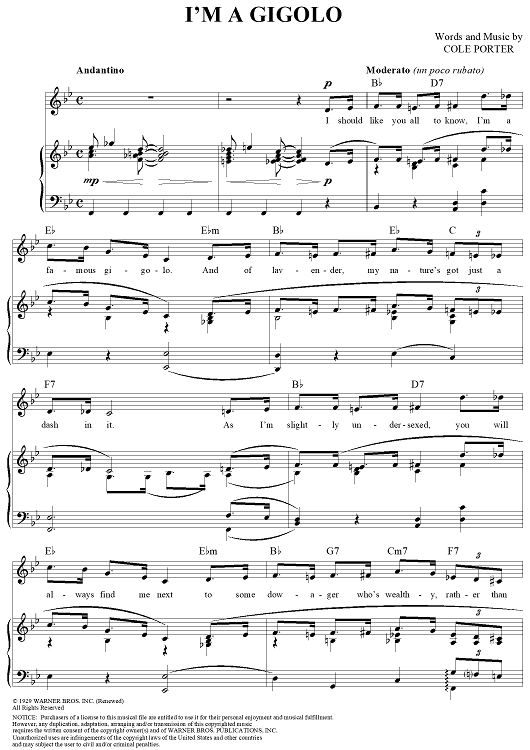 "I'm a Gigolo" Sheet Music by Cole Porter