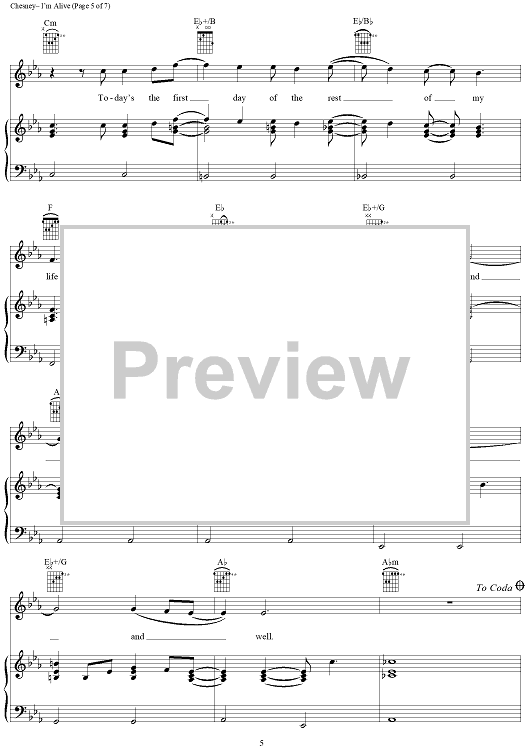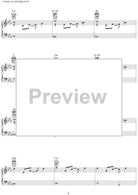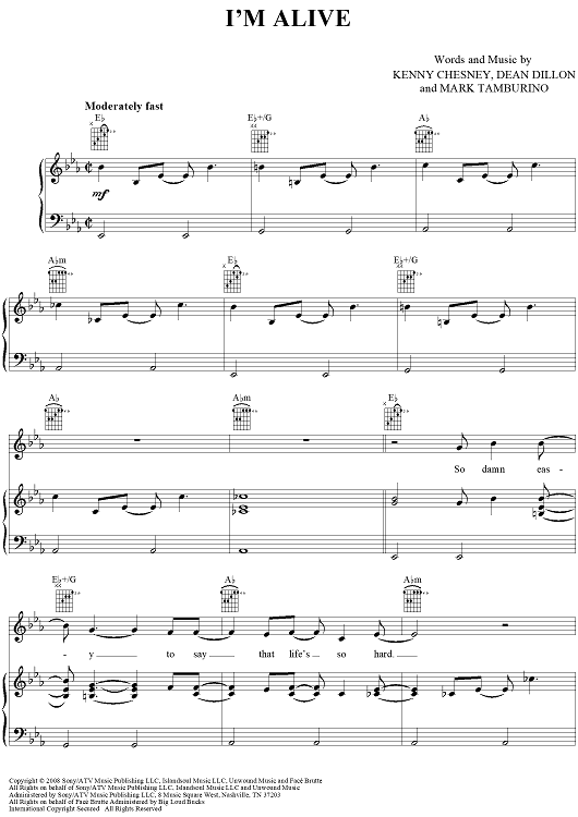 Digital Sheet Music for I'm Alive by Kenny Chesney scored for Piano/Vocal/Chords; id:406683