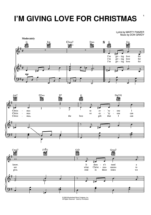 Digital Sheet Music for I'm Giving Love For Christmas by Marty Panzer, Don Grady scored for Piano/Vocal/Chords; id:387366