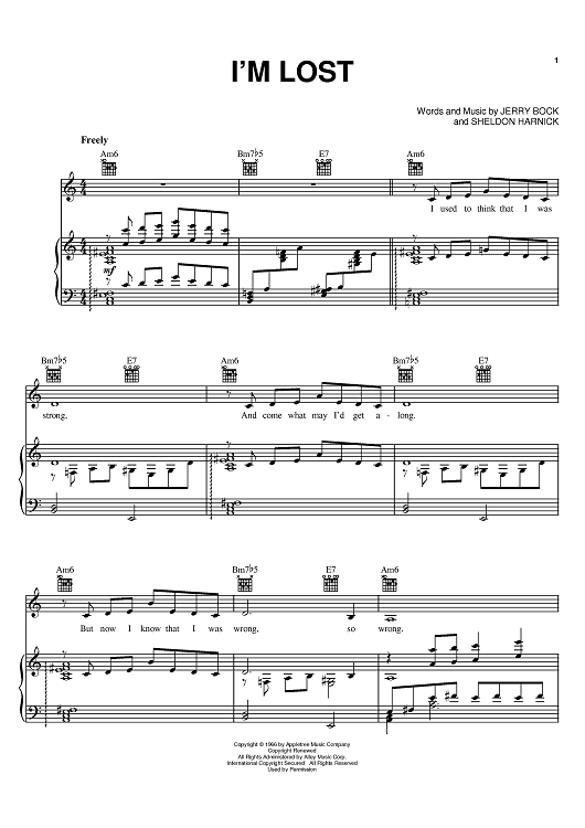 Digital Sheet Music for I'm Lost by Jerry Bock, Sheldon Harnick scored for Piano/Vocal/Chords; id:394549