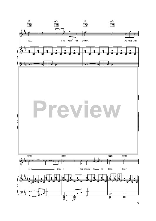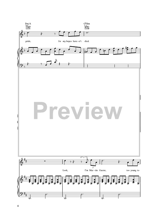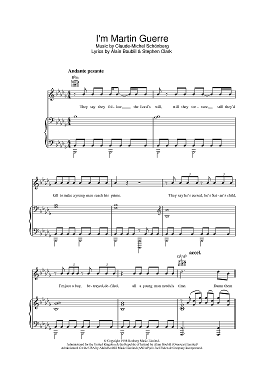 Digital Sheet Music for I'm Martin Guerre by Claude-Michel Schonberg, Alain Boublil scored for Piano/Vocal/Chords; id:390034