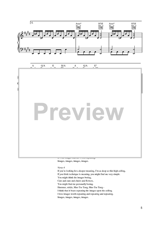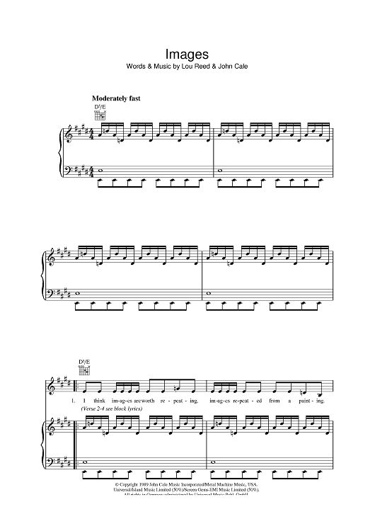 Digital Sheet Music for Images by John Cale, Lou Reed scored for Piano/Vocal/Chords; id:401896