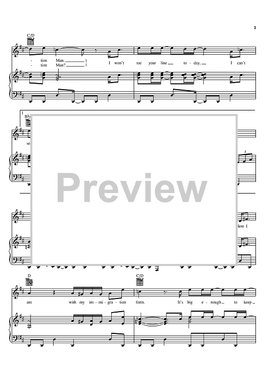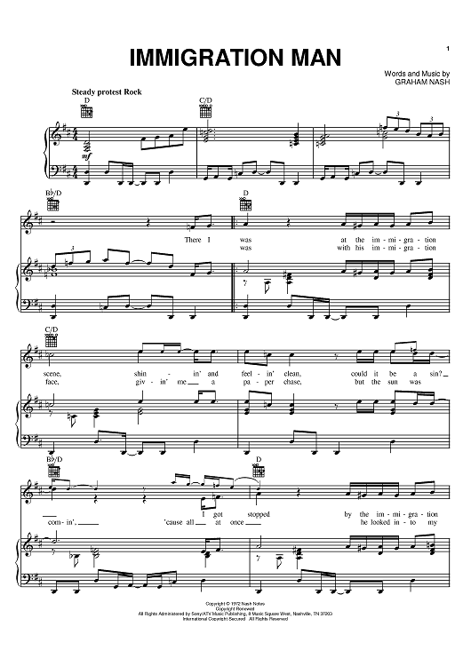 Digital Sheet Music for Immigration Man by Graham Nash, Crosby, Stills, Nash & Young scored for Piano/Vocal/Chords; id:382107