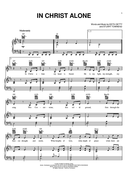 Digital Sheet Music for In Christ Alone by Stuart Townend, Margaret Becker, Keith Getty, Newsboys scored for Piano/Vocal/Chords; id:374766